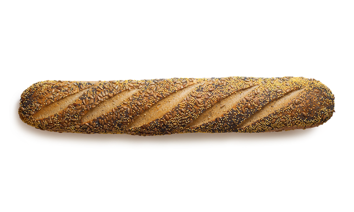 Ароматный багет с добавлением свежих трав, с хрустящей корочкой и мягкой, нежной мякотью.